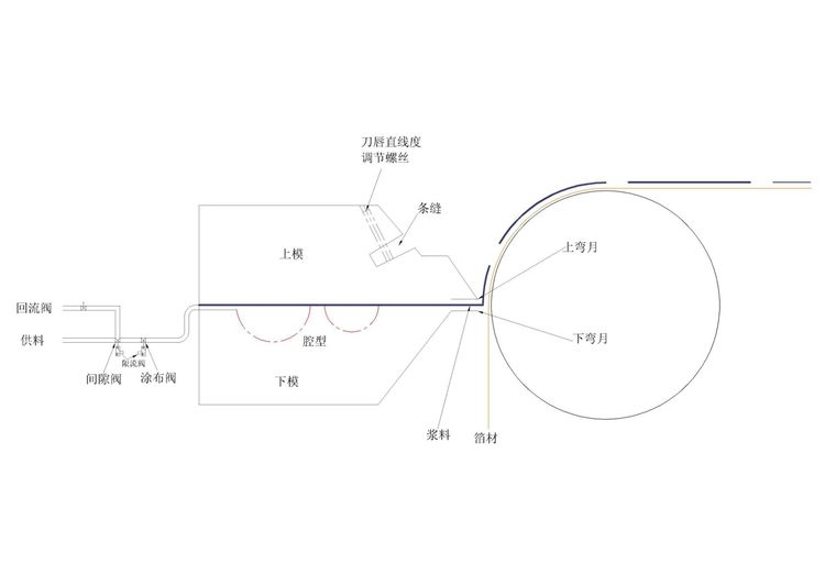 解決方法:為消除以上問題因此改進墊片形狀結(jié)構(gòu),①杜絕最上層漿料倒爬現(xiàn)象;選擇適當?shù)耐坎奸g隙和回流壓力值;②消除腔體內(nèi)死區(qū),保持漿料液恒溫狀態(tài)粘度穩(wěn)定,不允許液橋處有渦流和氣泡。